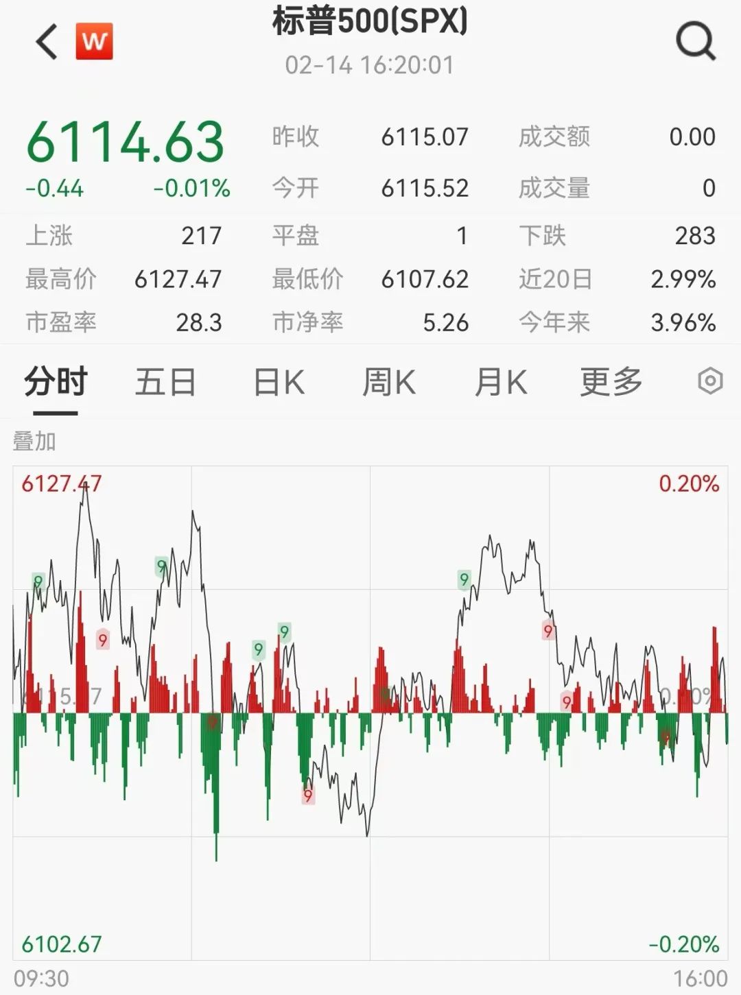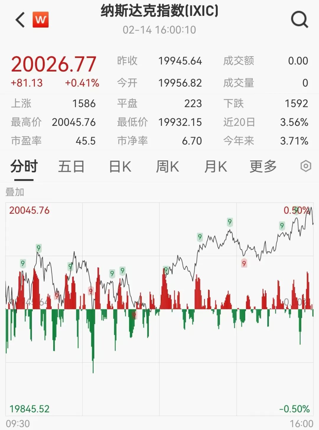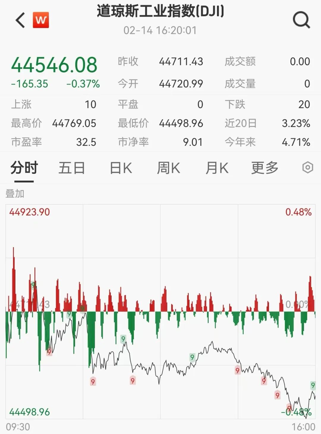 美东时间2月14日,美国三大股指收盘涨跌不一,道指跌0.37%,报44546.08点;标普500指数跌0.01%,报6114.63点;纳指涨0.41%,报20026.77点。