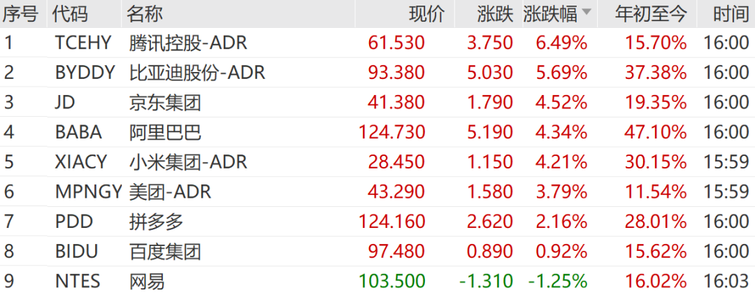 中概股普遍上涨,纳斯达克中国金龙指数涨2.27%,万得中概科技龙头指数涨4.57%。